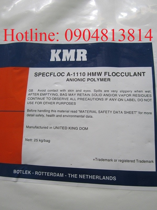 • Tên khác: Polymer Anion, Anion A1110, A1110 KMR, APAM, Anionic Polyacrylamide, Flocculant, chất trợ lắng, chất xử lý keo tụ.